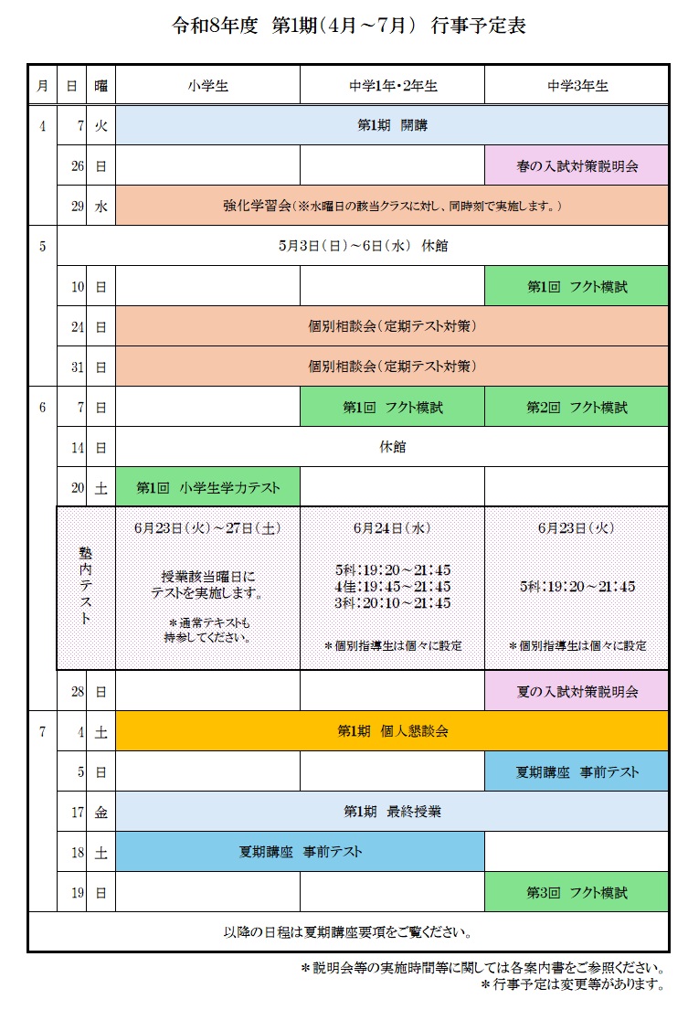 各教室にて要項を準備してお待ちしております。お気軽にお電話の上、ご来塾下さい。