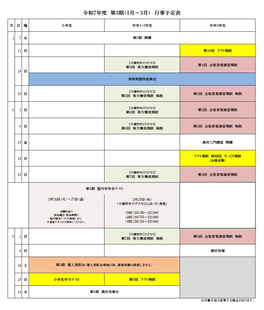 各教室にて要項を準備してお待ちしております。お気軽にお電話の上、ご来塾下さい。